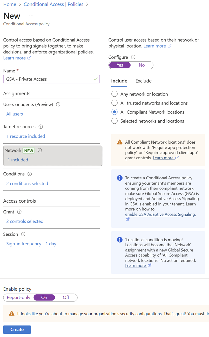 I think it’s important that the device is enrolled and using the Global Secure Access client. By requiring a compliant network, all other attempts to access on-premises applications outside of GSA are denied by default.