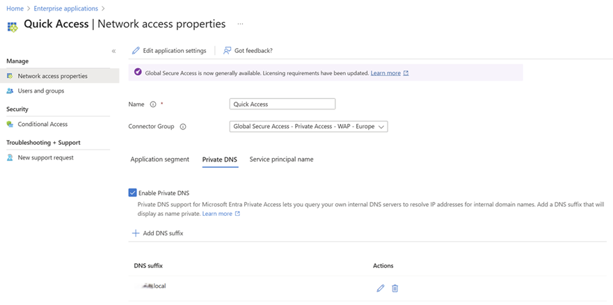 - Microsoft Entra ID P1/P2 license + Microsoft Entra Private Access add-on license