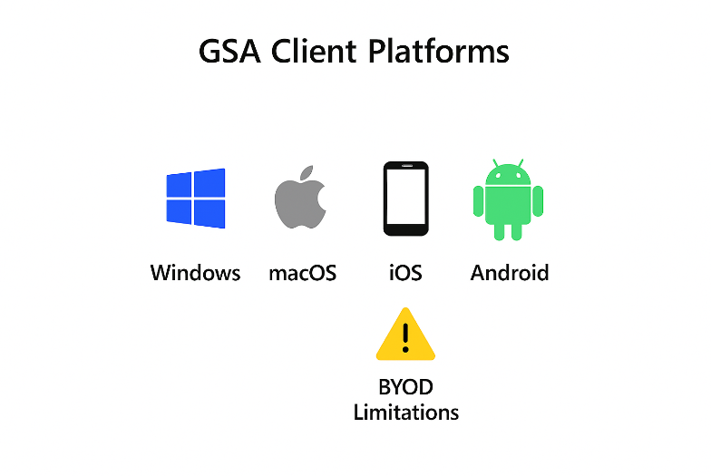 Tip: For Windows devices, package the GSA client as a Win32 app for Intune deployment. On mobile platforms (iOS/Android), the client can be downloaded from official app stores.