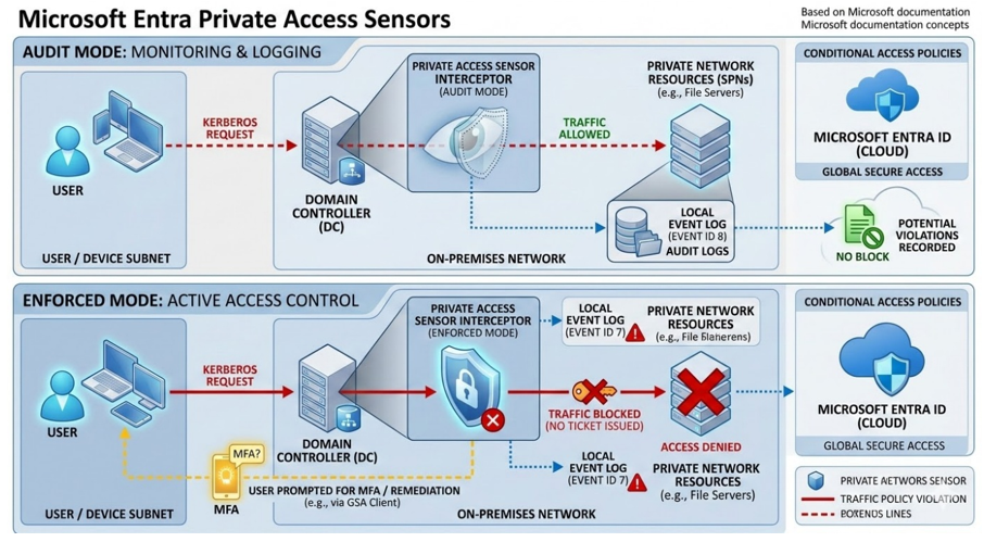 By combining Private Access Sensors with proper network segmentation and Conditional Access policies, organizations can significantly strengthen the security of their hybrid environments while maintaining compatibility with existing infrastructure.