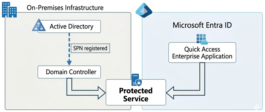 The SPN must exist in Active Directory and also be registered in the Quick Access Enterprise Application in Microsoft Entra.